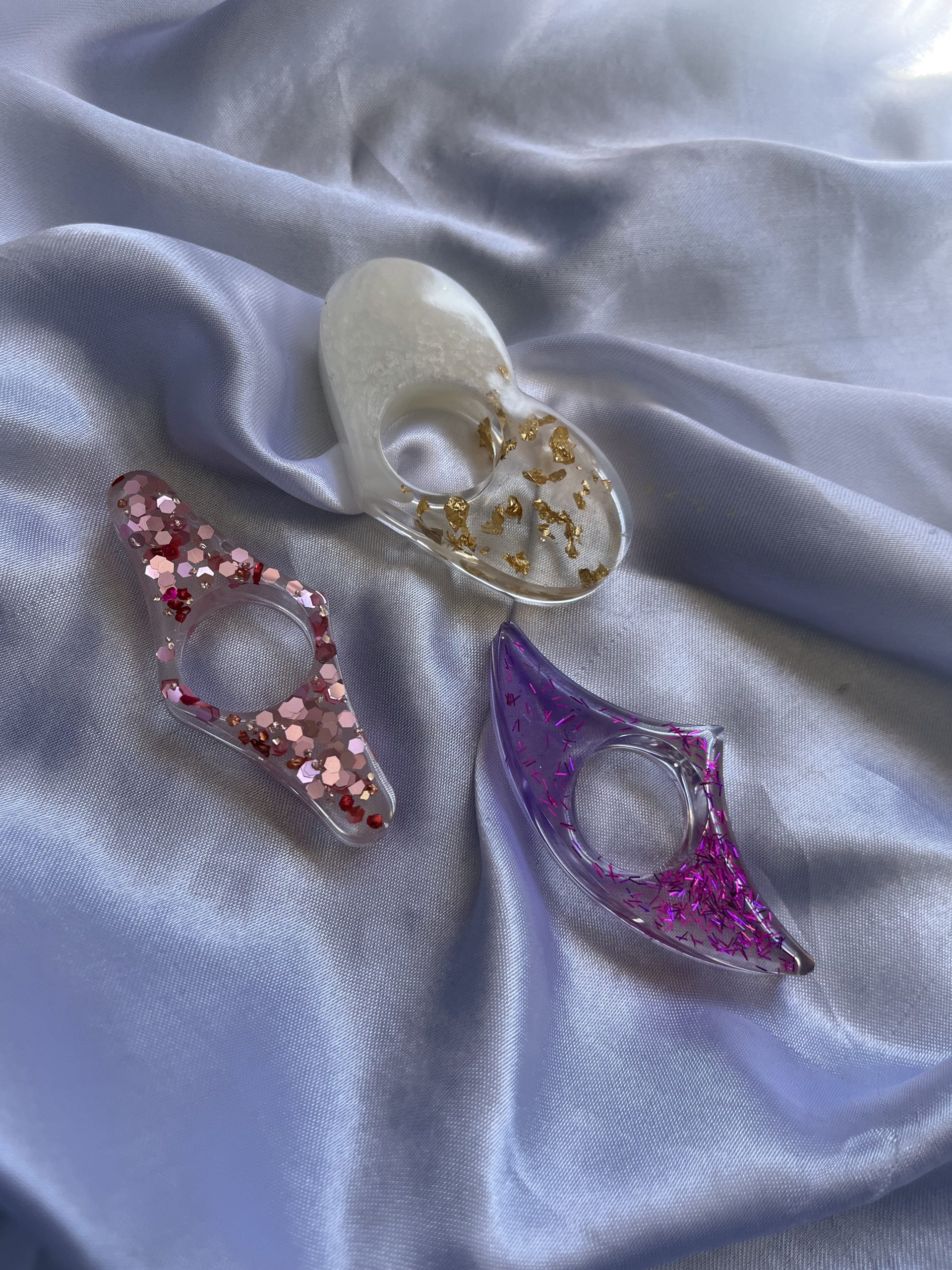 Modèle | Blanc et doré, Rose pailletée, Violet pailletée |