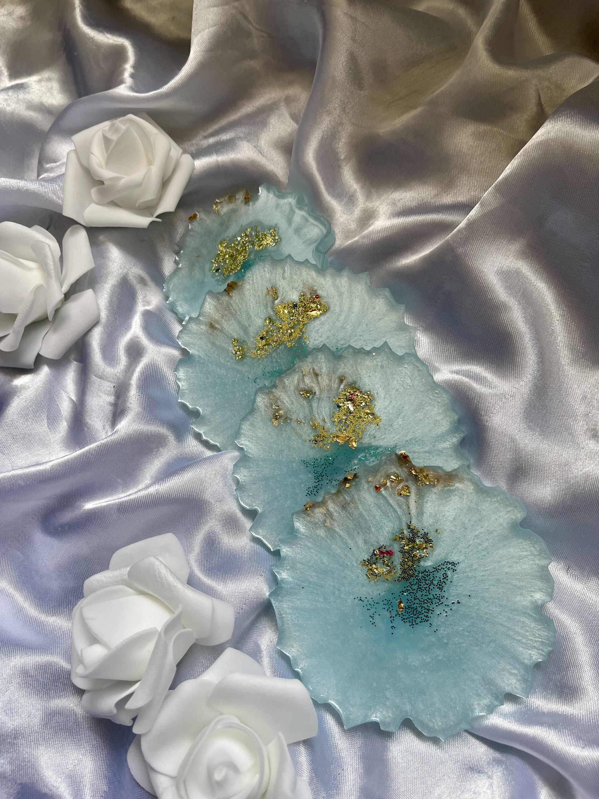 Lot de 4 dessous de verre en résine époxy modèle UNIQUE.